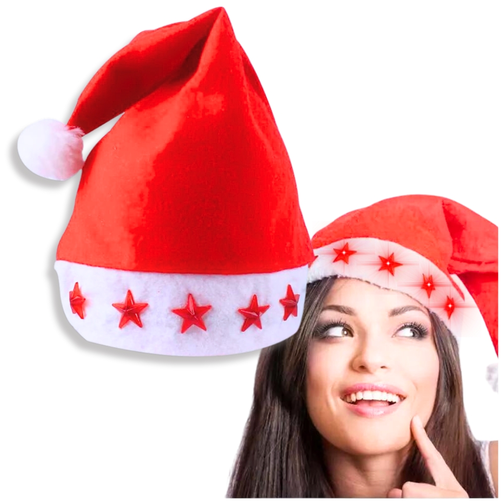 ⭐ CZAPKA MIKOŁAJOWA ŚWIĄTECZNA LED GWIAZDKI DLA DZIECI I DOROSŁYCH