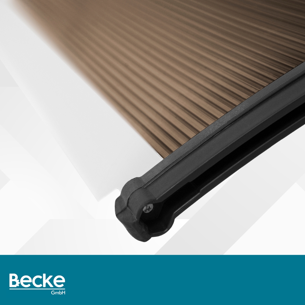 Daszek wykonany z polipropylenu, aluminium i poliwęglanu komorowego zapewnia doskonałe połączenie lekkości, odporności i trwałości. Wyróżnia się na tle konkurencyjnych produktów nowoczesnym designem i łatwością montażu. Grubość płyty 5 mm gwarantuje odporność na uderzenia i wpływ warunków atmosferycznych. Dodatkowo stabilizacja UV chroni powierzchnię przed żółknięciem i przebarwieniami.