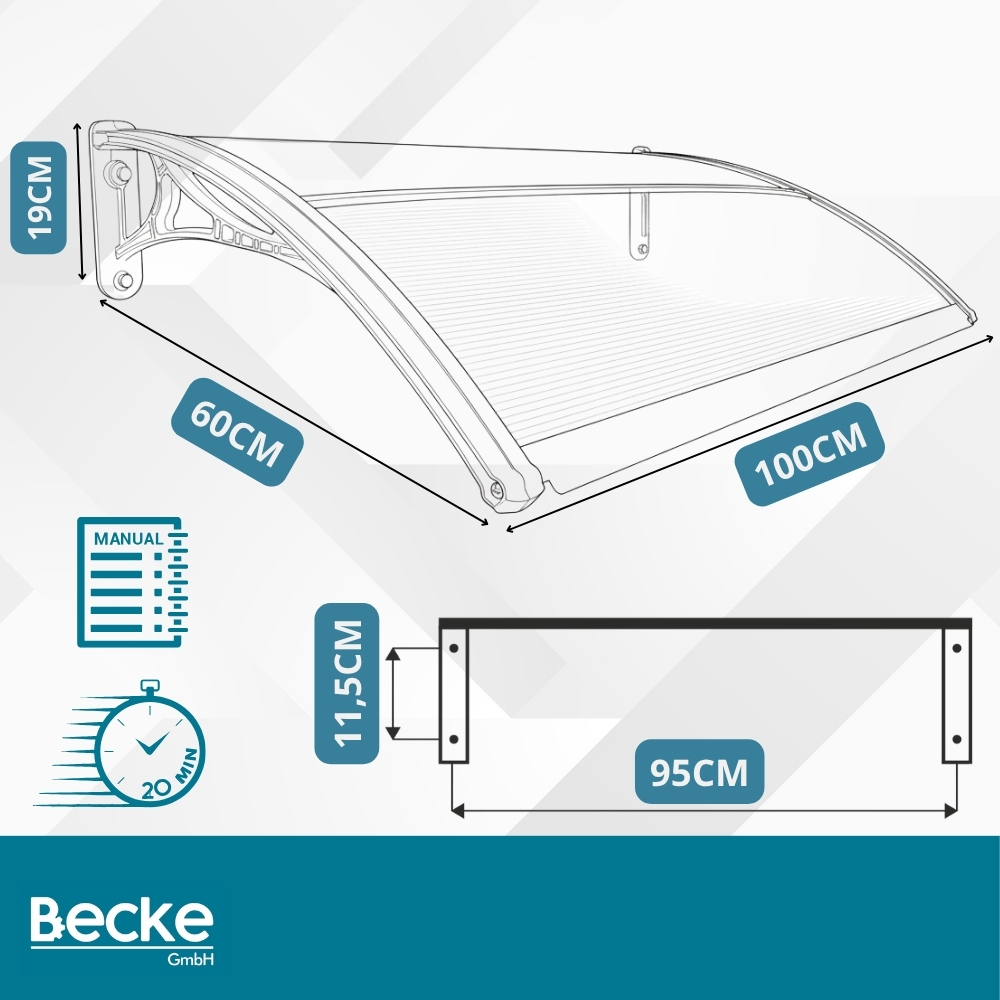 ☑️ Funkcjonalne i eleganckie zadaszenie łukowe zapewniające skuteczną ochronę przed deszczem, śniegiem i słońcem. Konstrukcja oparta na wytrzymałych materiałach, takich jak poliwęglan komorowy i aluminium, gwarantuje odporność na warunki atmosferyczne. Dzięki uniwersalnym wymiarom idealnie nadaje się do montażu nad drzwiami wejściowymi, oknami czy balkonem. Idealnie sprawdzi się również do ochrony bankomatów, witryn sklepowych, czy też wejść do klatek schodowych.