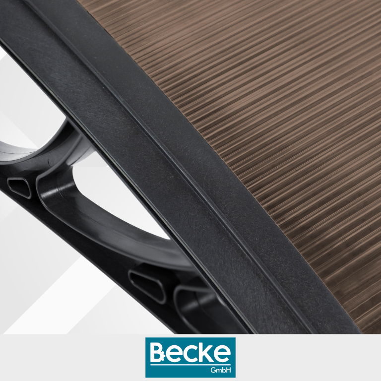 Daszek wykonany z polipropylenu, aluminium i poliwęglanu komorowego zapewnia doskonałe połączenie lekkości, odporności i trwałości. Wyróżnia się na tle konkurencyjnych produktów nowoczesnym designem i łatwością montażu. Grubość płyty 5 mm gwarantuje odporność na uderzenia i wpływ warunków atmosferycznych. Dodatkowo stabilizacja UV chroni powierzchnię przed żółknięciem i przebarwieniami.
