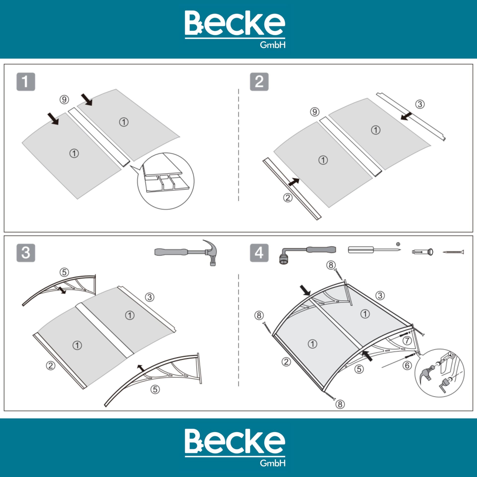 6. Bei Beschädigung von Polycarbonatplatte oder Halterungen darf das Produkt nicht weiterverwendet werden.