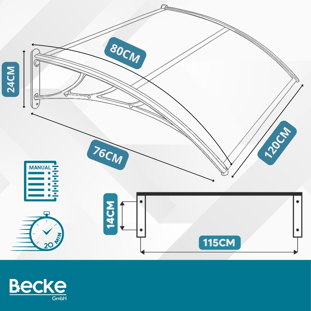 Daszek nad drzwi 120×80 przeźroczysty – Becke