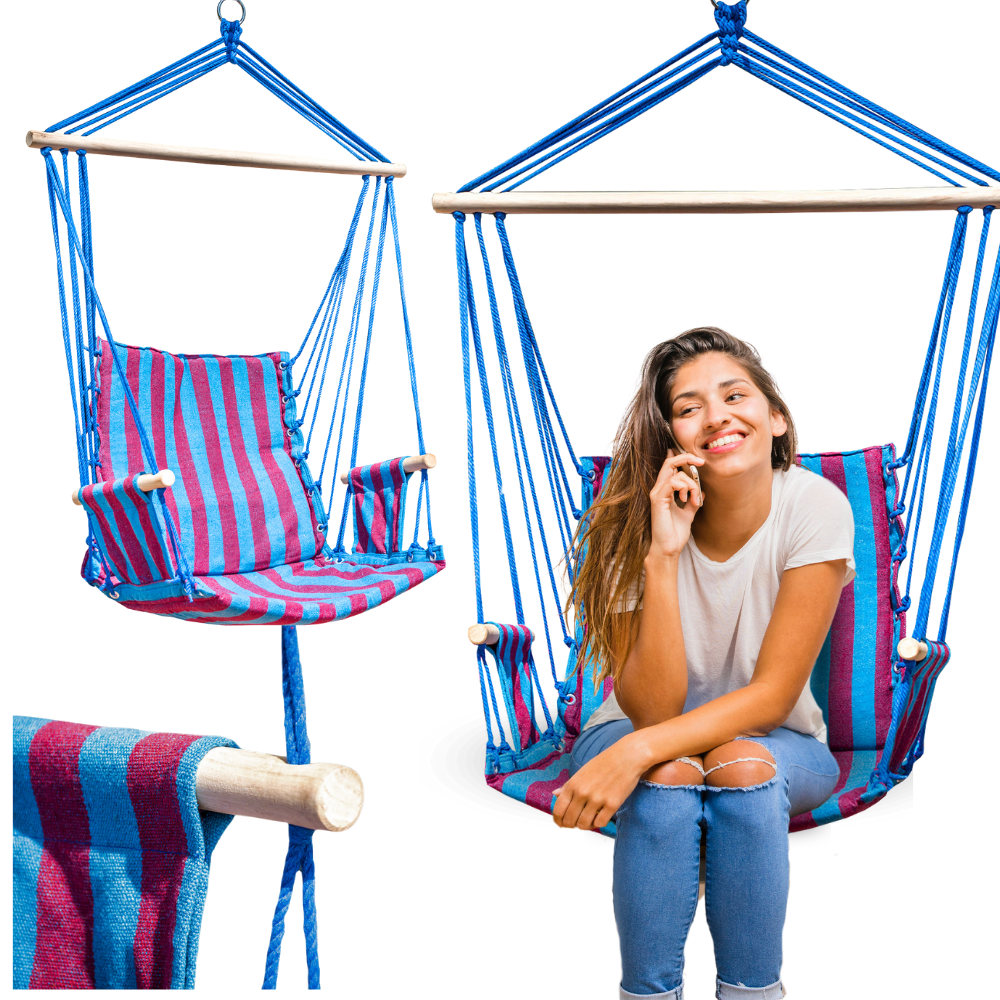 Ciepłe letnie popołudnie spędzone w cieniu drzew na fotelu wieszanym brzmi jak marzenie? Nie musi tak być! Sprawdzi się zawieszony na drzewie, stelażu czy balkonie. Jeśli cenisz sobie chwile zasłużonego relaksu z dobrą książką lub szklanką lemoniady to ten fotel jest dla Ciebie!