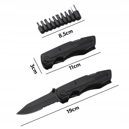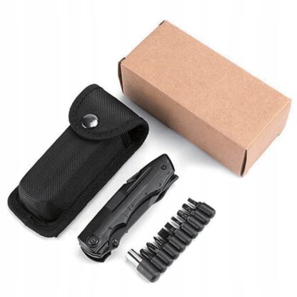 Multitool posiada 21 najpopularniejszych i najczęściej używanych narzędzi. Świetnie leży w dłoni, a po złożeniu zajmuje niewiele miejsca. Można go schować w kieszeni bądź saszetce. W zestawie znajduje się pokrowiec na narzędzie jak i wszystkie dodatkowe bity.