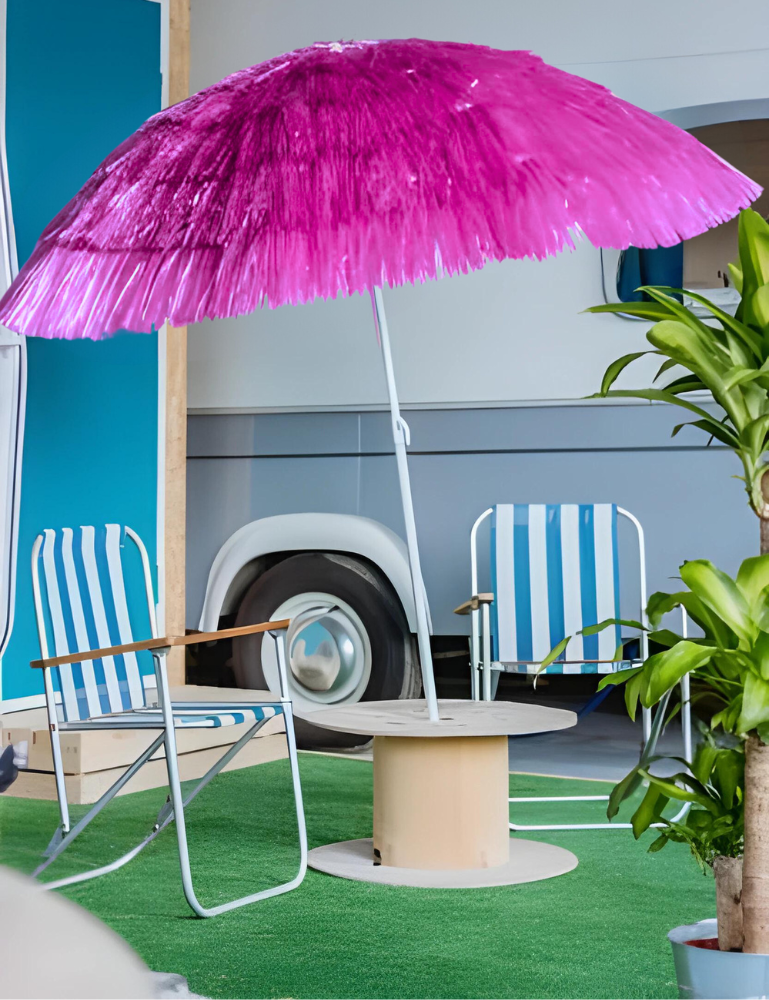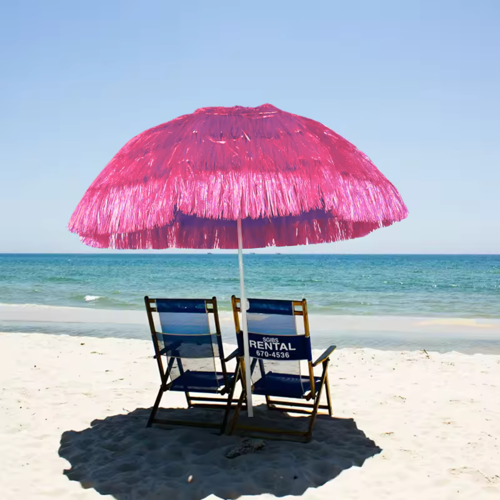 Zakochaj się w naszym parasolu ogrodowym w stylu hawajskim. Wprowadzi on nieco egzotyki do Twojej przestrzeni zewnętrznej, tworząc przytulną atmosferę i cień, idealnie na upalne dni.