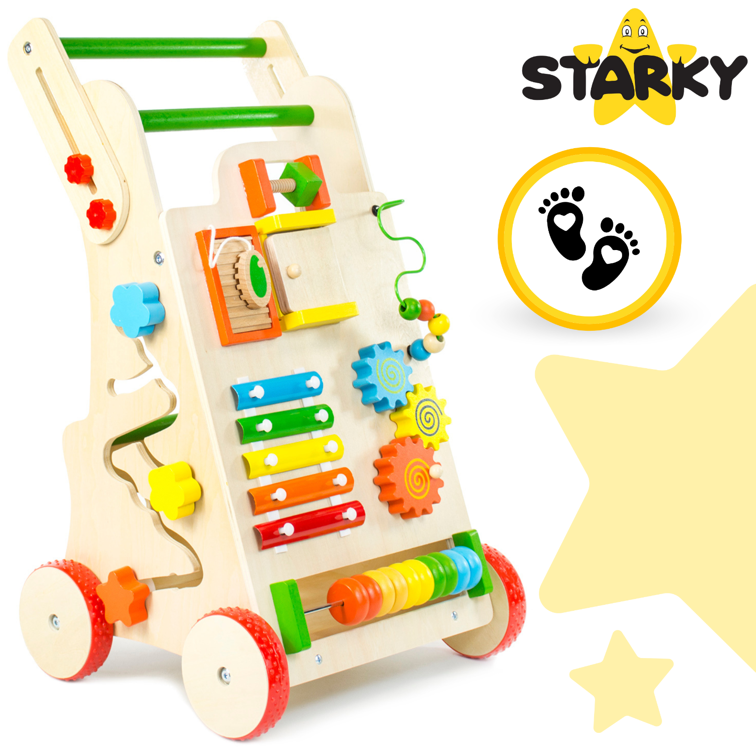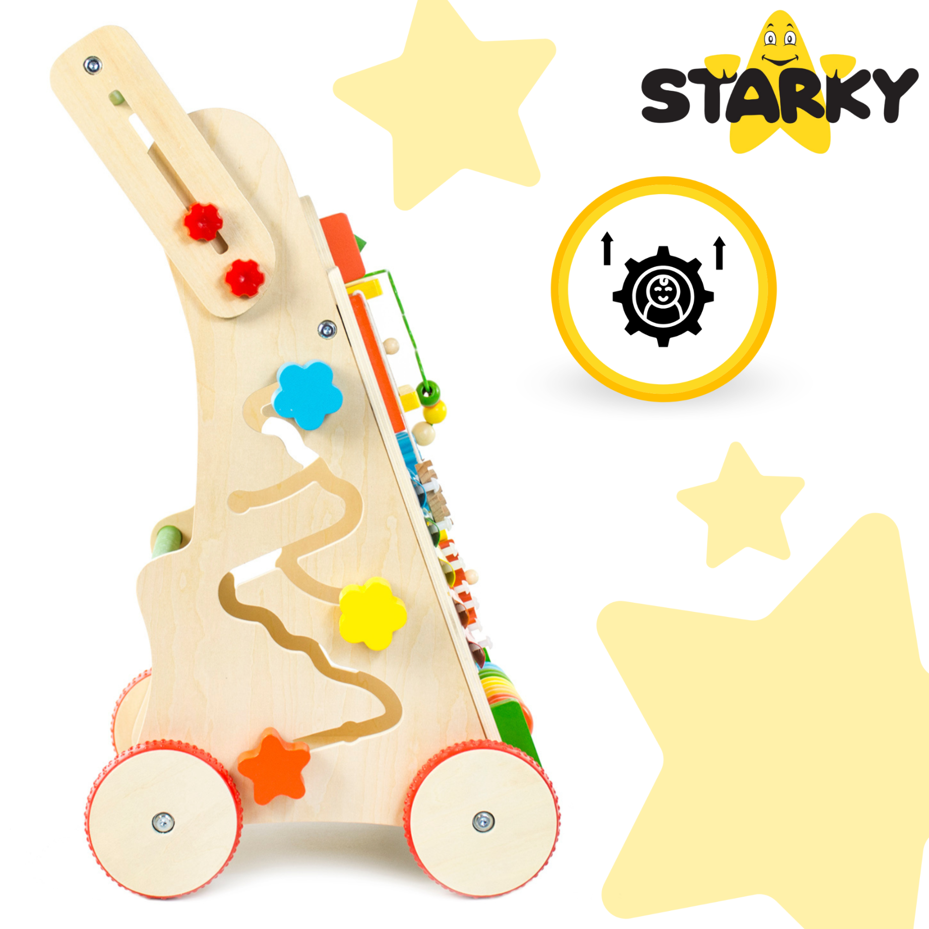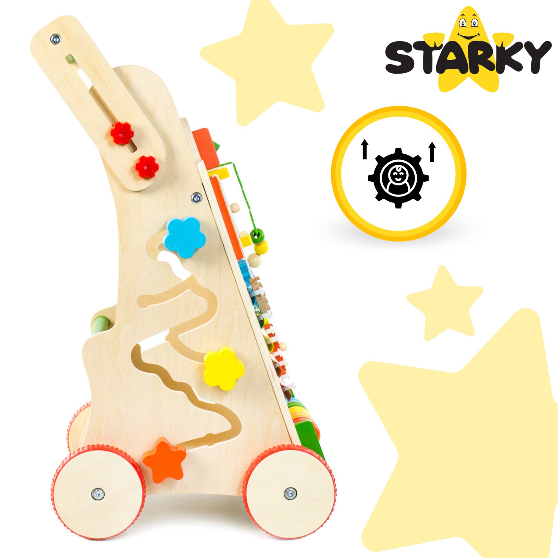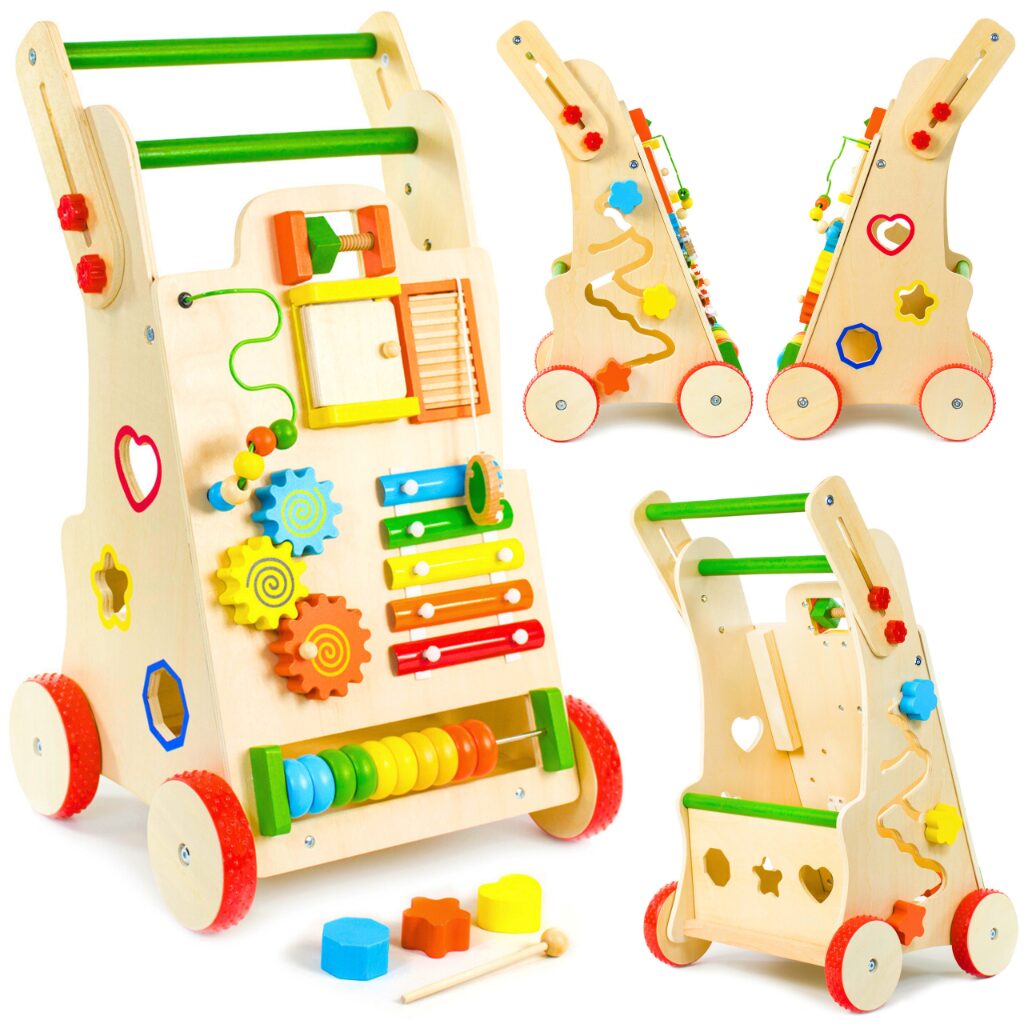 ☑️ Pierwsze kroki to ważny moment w życiu malucha – a drewniany pchacz sprawi, że będą one pełne radości i zabawy! ? Dzięki różnorodnym atrakcjom dziecko nie tylko nauczy się chodzić, ale także rozwija kreatywność i zdolności manualne. To coś więcej niż zwykły chodzik – to pierwszy mobilny plac zabaw! Maluch pokocha swoje nowe centrum aktywności, a rodzice będą spokojni o jego bezpieczeństwo. A kto wie, może za chwilę zacznie biegać? ♥️