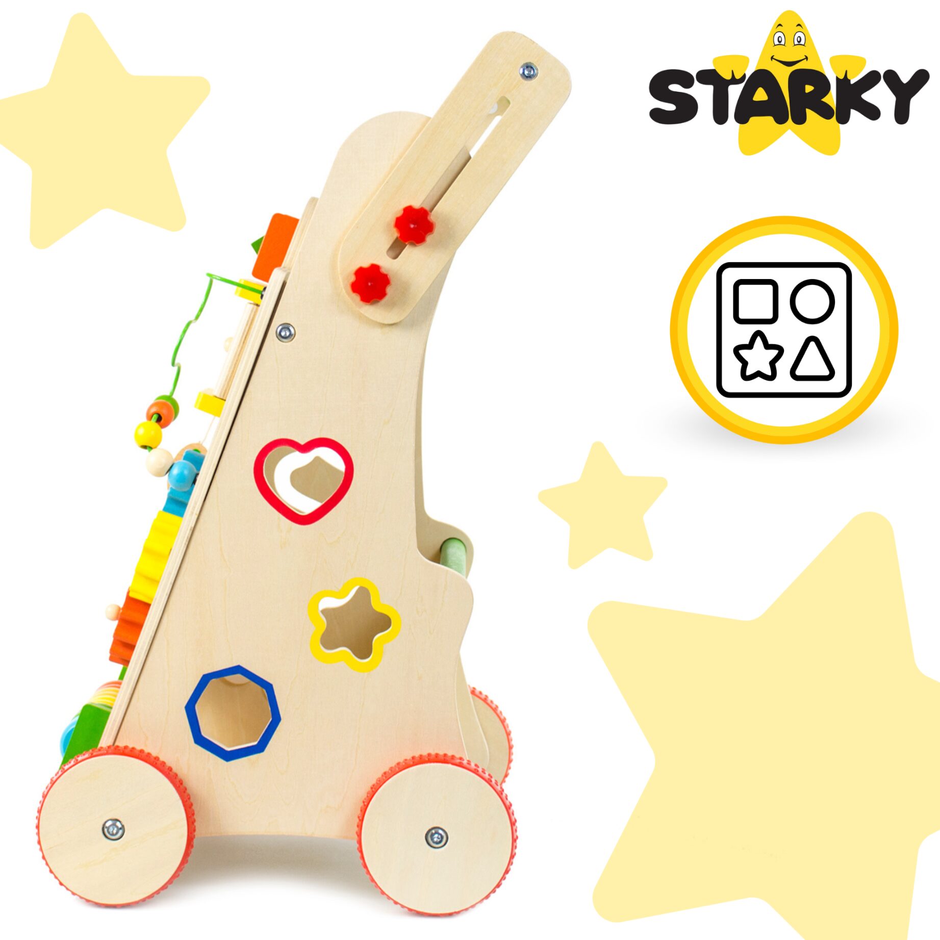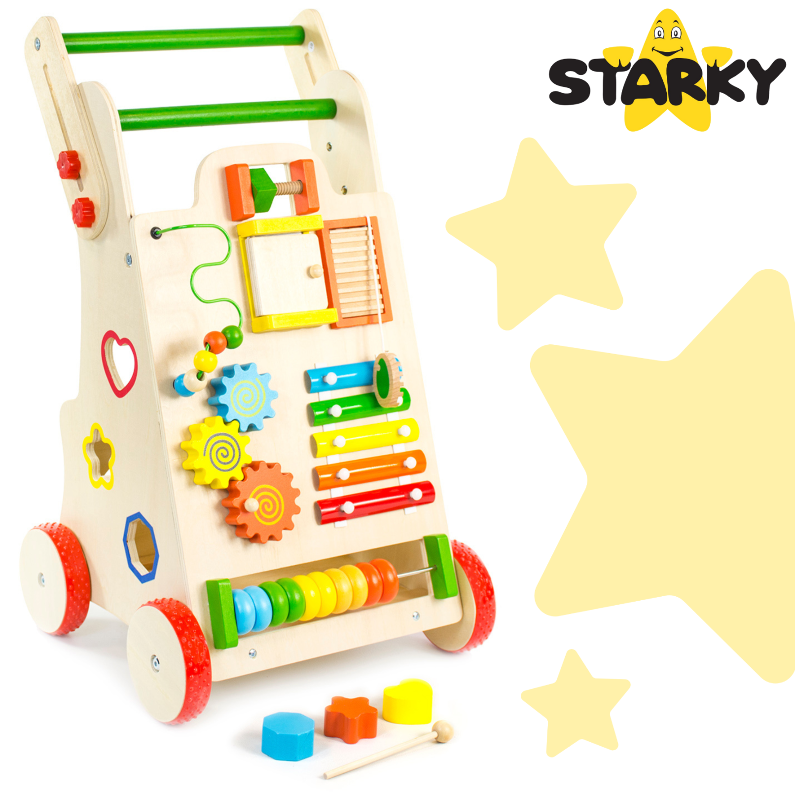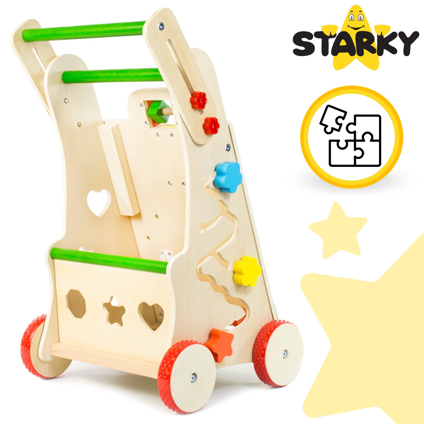 ☑️ Pierwsze kroki to ważny moment w życiu malucha – a drewniany pchacz sprawi, że będą one pełne radości i zabawy! ? Dzięki różnorodnym atrakcjom dziecko nie tylko nauczy się chodzić, ale także rozwija kreatywność i zdolności manualne. To coś więcej niż zwykły chodzik – to pierwszy mobilny plac zabaw! Maluch pokocha swoje nowe centrum aktywności, a rodzice będą spokojni o jego bezpieczeństwo. A kto wie, może za chwilę zacznie biegać? ♥️