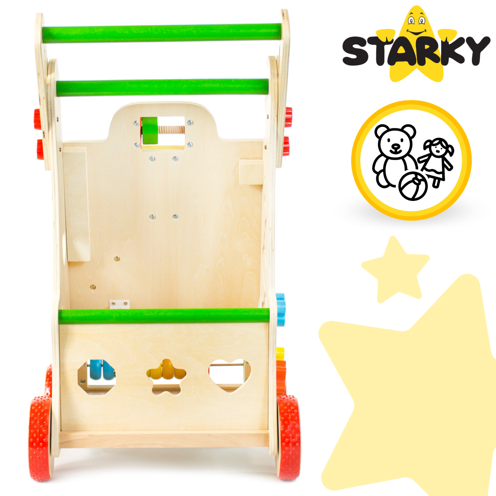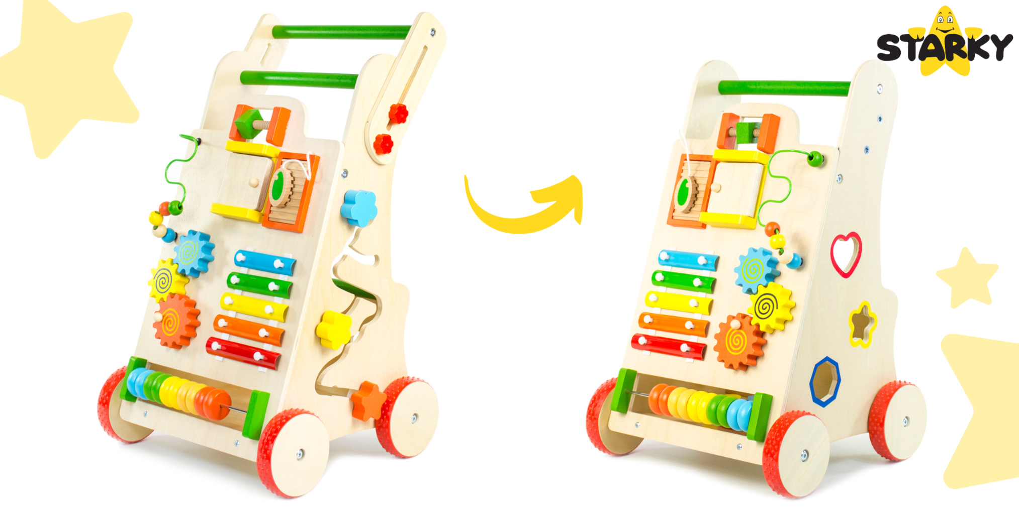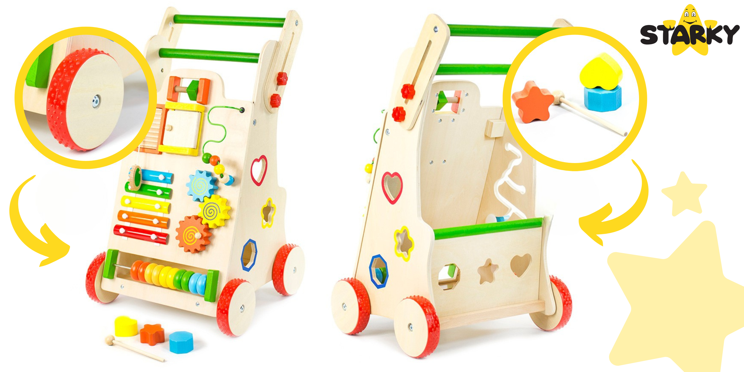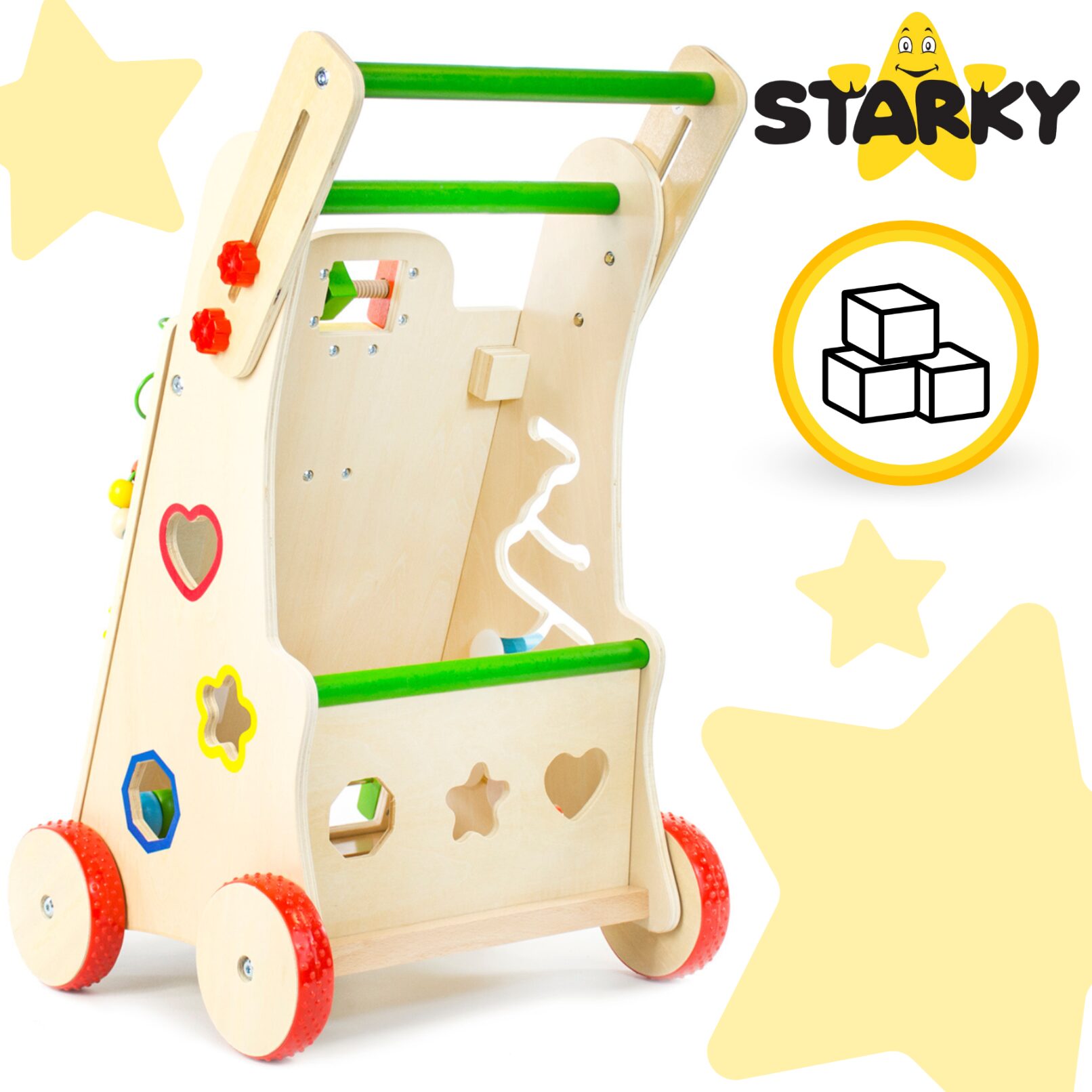 ☑️ Pierwsze kroki to ważny moment w życiu malucha – a drewniany pchacz sprawi, że będą one pełne radości i zabawy! ? Dzięki różnorodnym atrakcjom dziecko nie tylko nauczy się chodzić, ale także rozwija kreatywność i zdolności manualne. To coś więcej niż zwykły chodzik – to pierwszy mobilny plac zabaw! Maluch pokocha swoje nowe centrum aktywności, a rodzice będą spokojni o jego bezpieczeństwo. A kto wie, może za chwilę zacznie biegać? ♥️