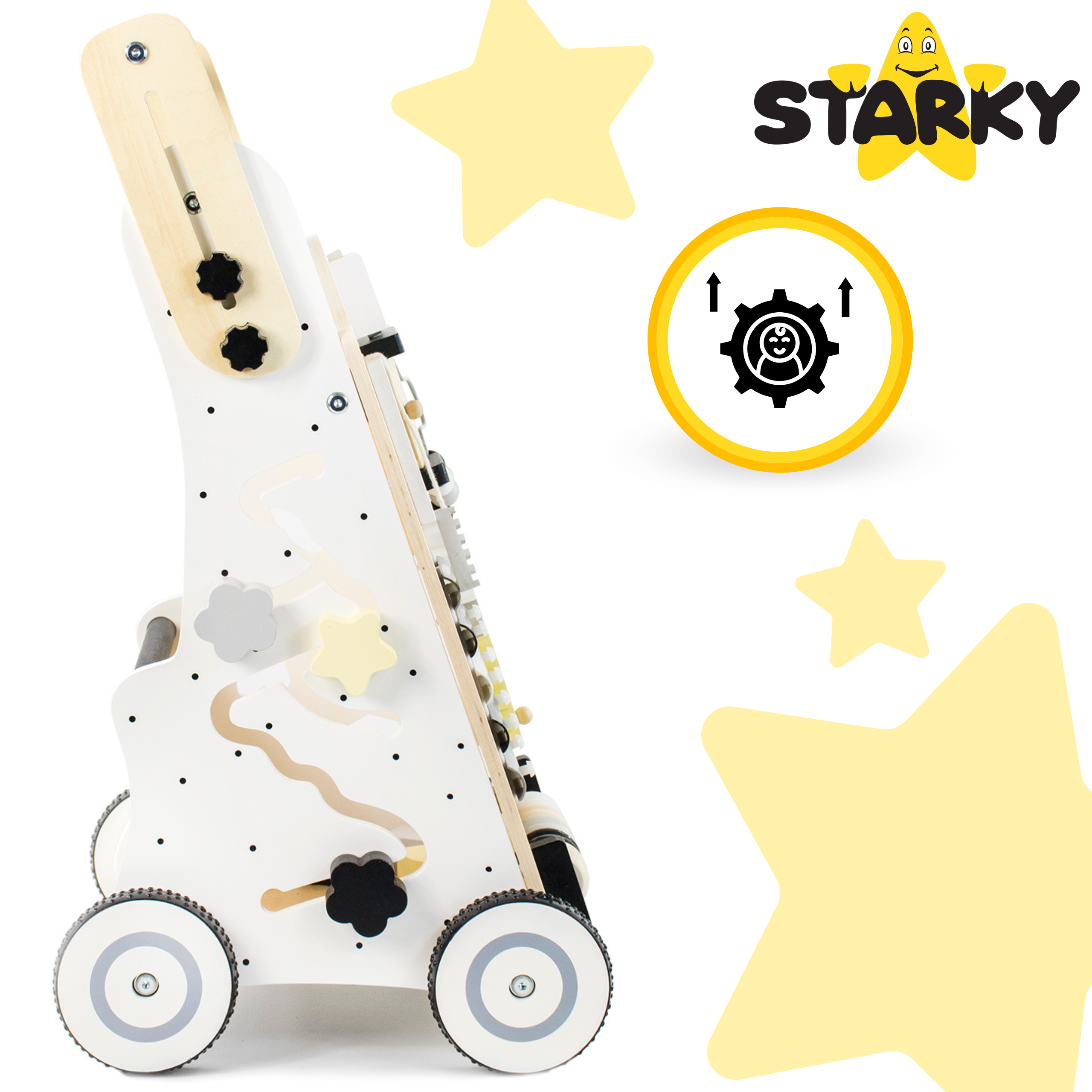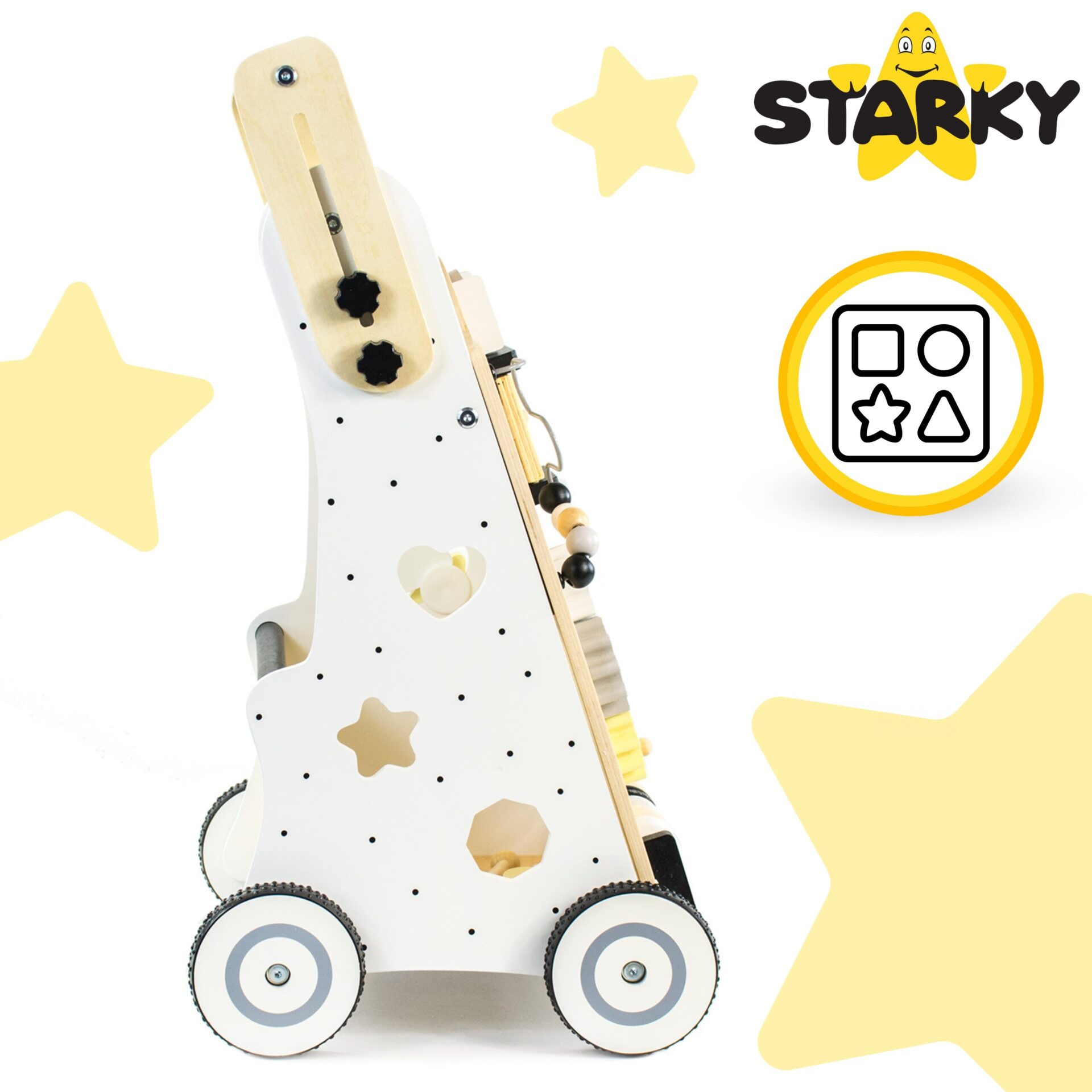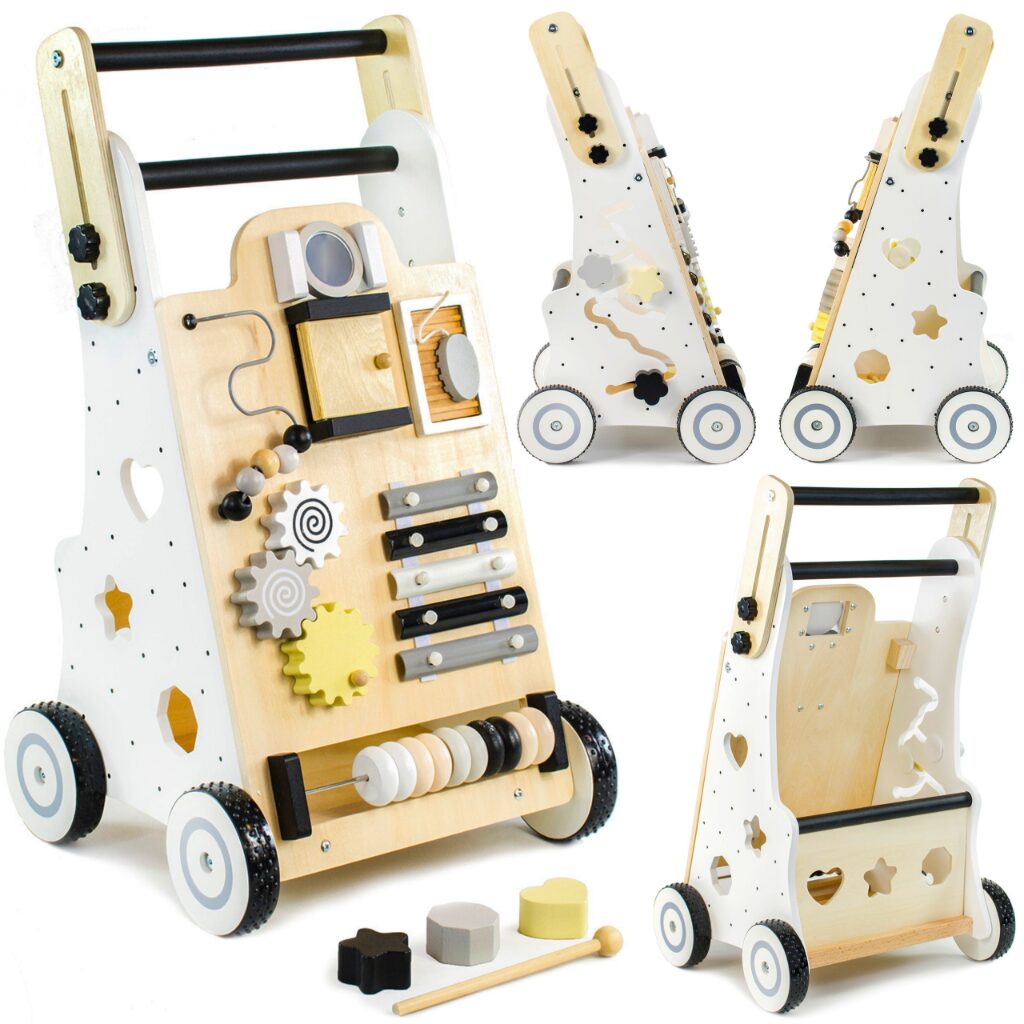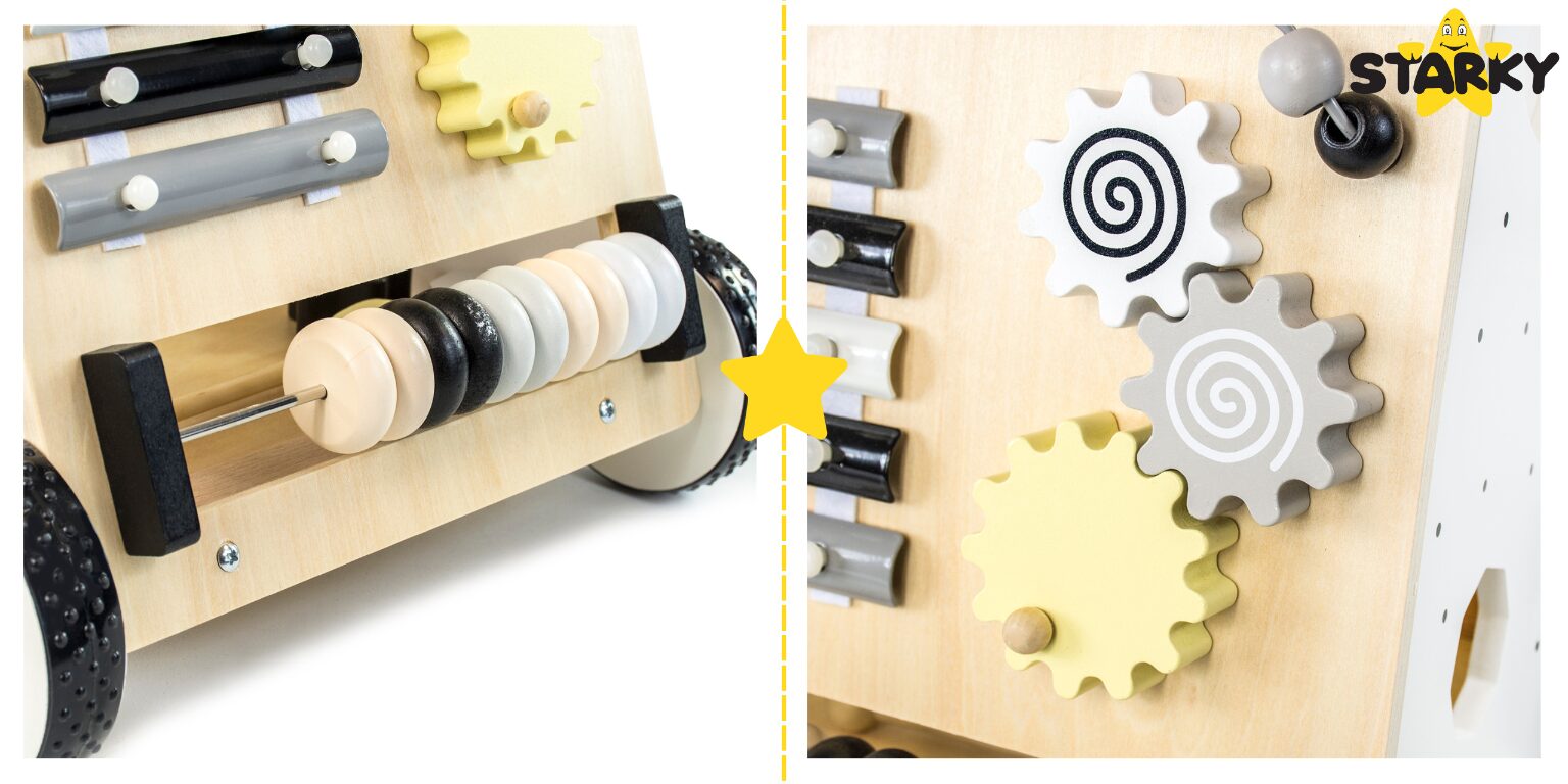 ☑️ Pierwsze kroki to ważny moment w życiu malucha – a drewniany pchacz sprawi, że będą one pełne radości i zabawy! ? Dzięki różnorodnym atrakcjom dziecko nie tylko nauczy się chodzić, ale także rozwija kreatywność i zdolności manualne. To coś więcej niż zwykły chodzik – to pierwszy mobilny plac zabaw! Maluch pokocha swoje nowe centrum aktywności, a rodzice będą spokojni o jego bezpieczeństwo. A kto wie, może za chwilę zacznie biegać? ♥️
