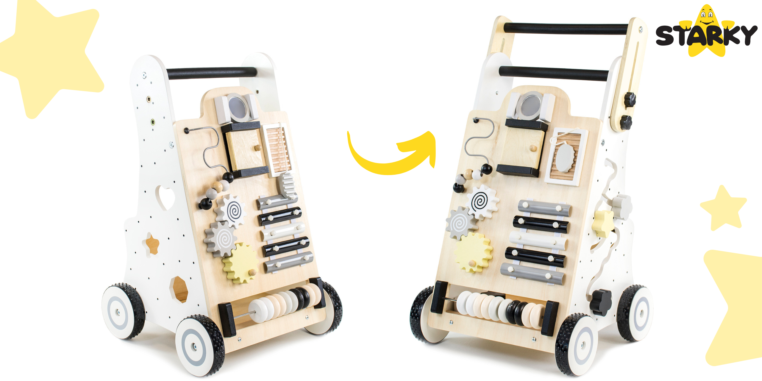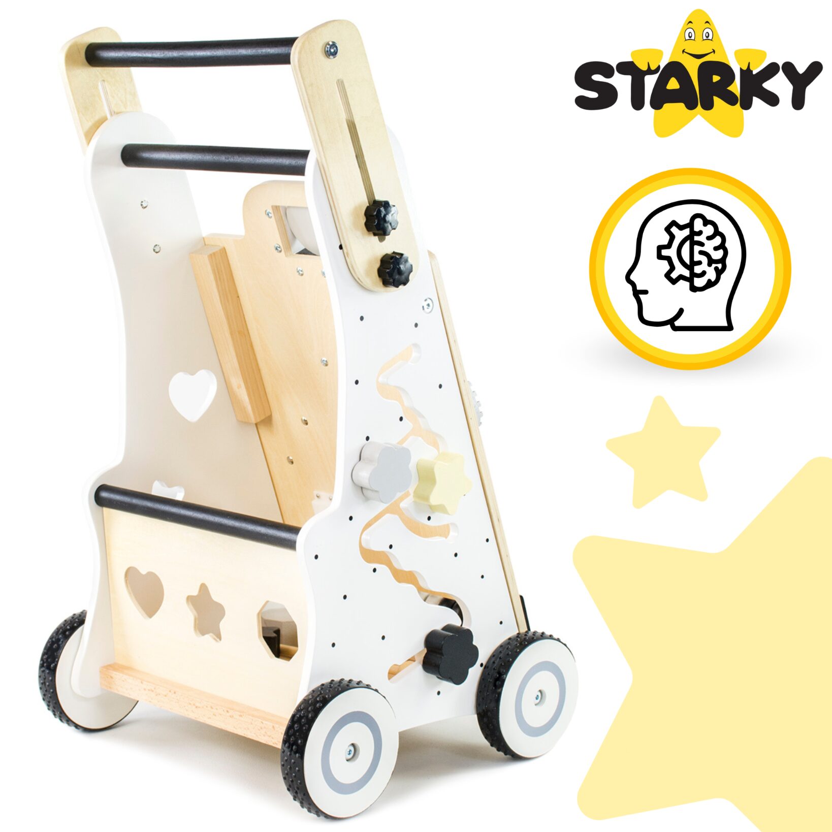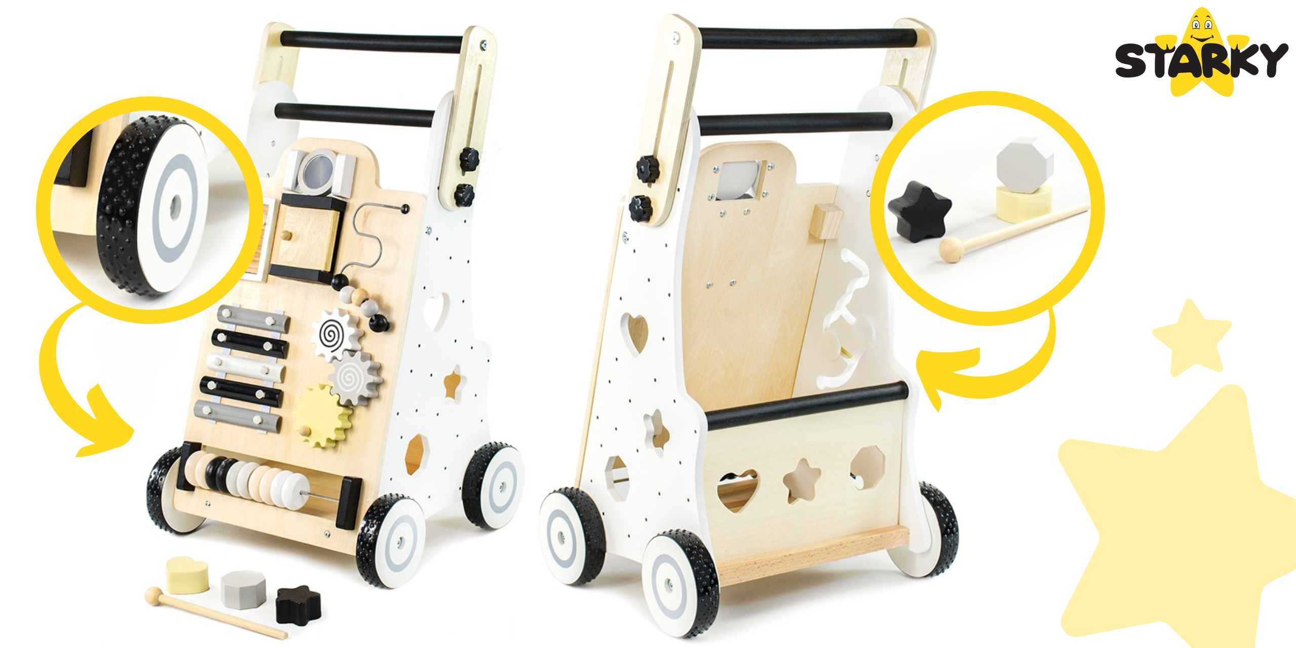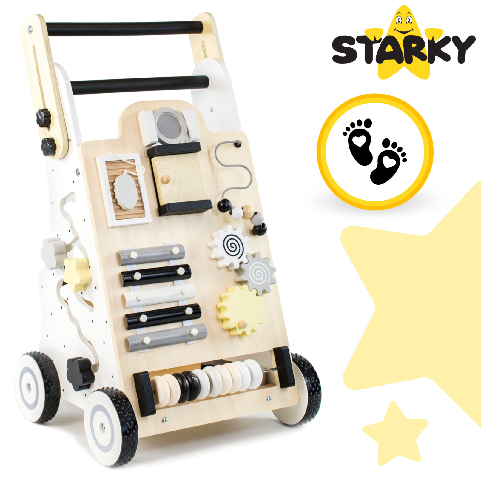 ☑️ Pierwsze kroki to ważny moment w życiu malucha – a drewniany pchacz sprawi, że będą one pełne radości i zabawy! ? Dzięki różnorodnym atrakcjom dziecko nie tylko nauczy się chodzić, ale także rozwija kreatywność i zdolności manualne. To coś więcej niż zwykły chodzik – to pierwszy mobilny plac zabaw! Maluch pokocha swoje nowe centrum aktywności, a rodzice będą spokojni o jego bezpieczeństwo. A kto wie, może za chwilę zacznie biegać? ♥️