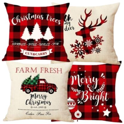 ✨ POSZEWKI ŚWIĄTECZNE DEKORACYJNE NA PODUSZKĘ JASIEK 4SZT ZESTAW BOŻE NARODZENIE KOMPLET BAWEŁNA NA ZAMEK