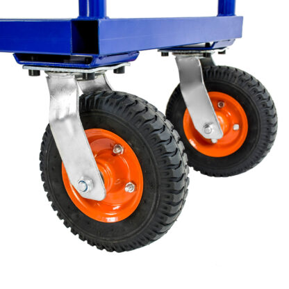 ✅Dwa skrętne, pompowane koła z bieżnikiem z możliwością dostosowania ciśnienia do wagi ładunku, zapobiegają poślizgom, doskonale sprawdzają się na każdej nawierzchni.
