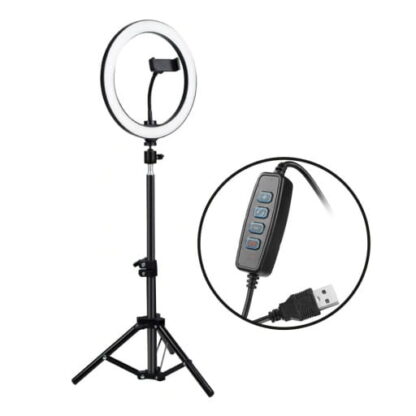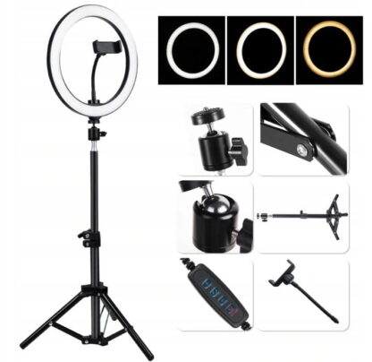 Lampa pierścieniowa zapewniająca idealnie oświetloną twarz, doskonała do nagrywania filmików, przydatna przy makijażu. Równomiernie doświetli każde zdjęcie produktowe i zdjęcia macro eliminując zbędne cienie. Lampa jest gotowa do użycia zaraz po rozpakowaniu.