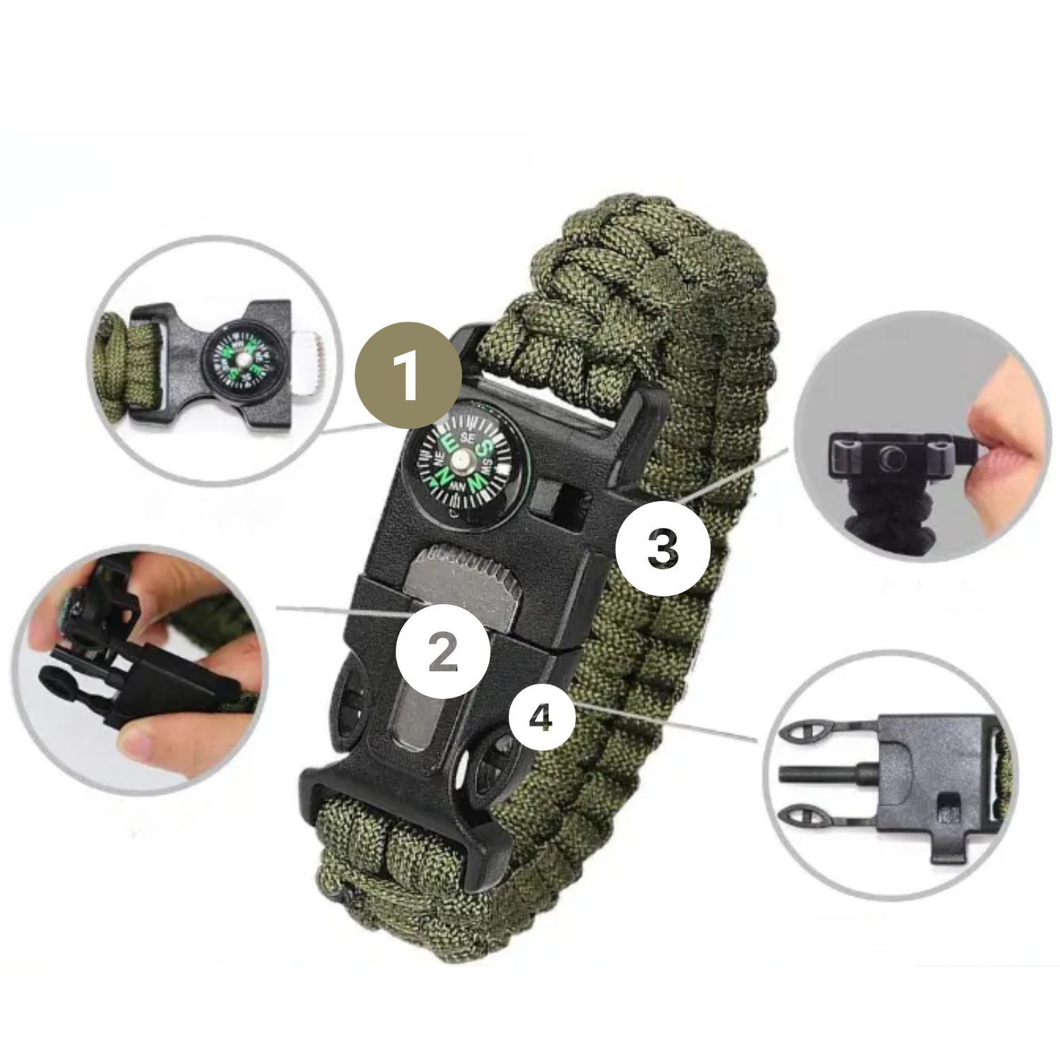 ❎ bransoletka paracord – ok. 350 cm linki paracord z kompasem, gwizdkiem i krzesiwem