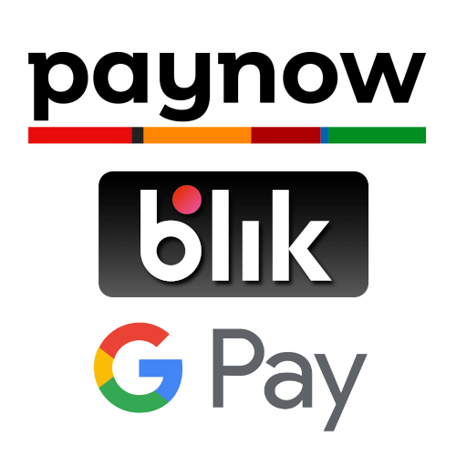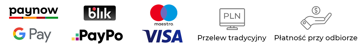 i MasterCard, a także za pomocą Google Pay oraz BLIK. Dodatkowo dostępny jest szybki przelew online bezpośrednio z Twojego banku, dzięki czemu realizacja zamówienia przebiega sprawnie